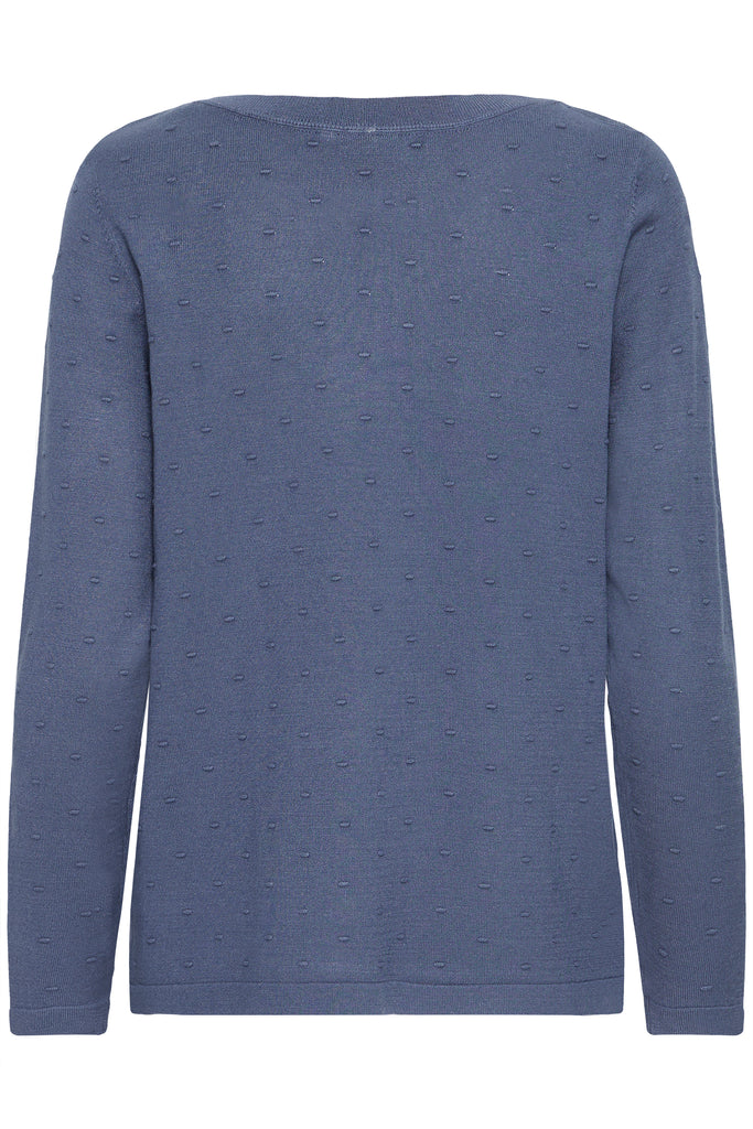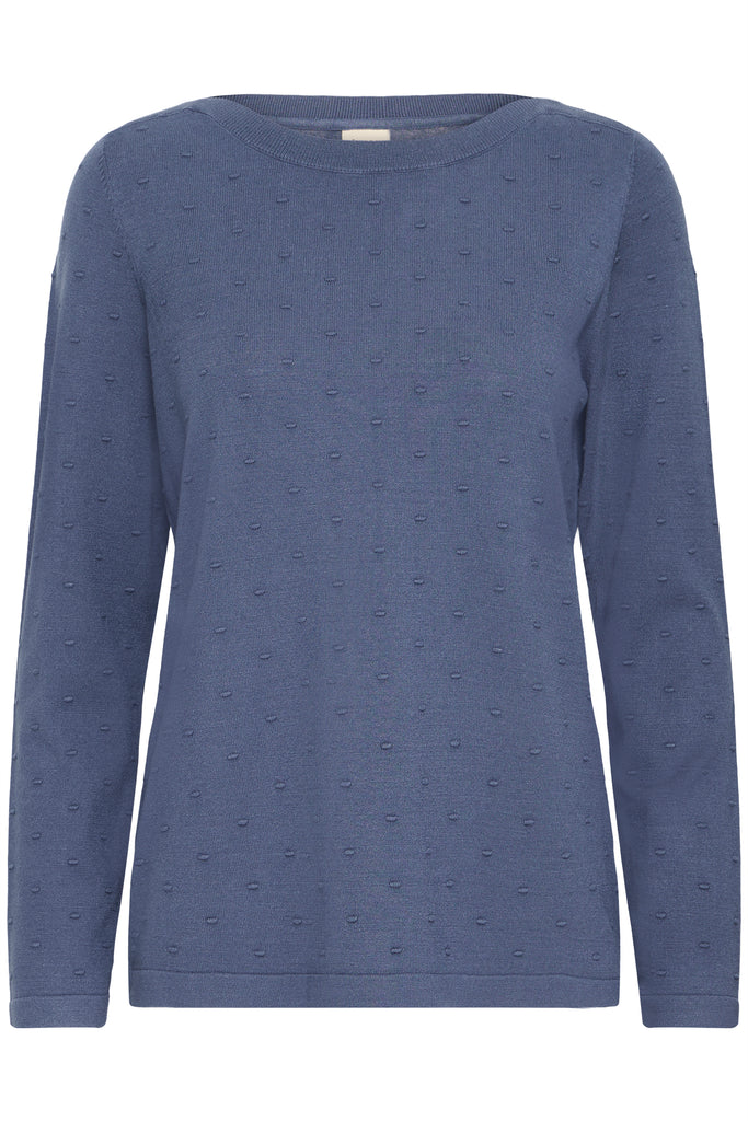 Elevate your wardrobe with the Karianne Jumper in Blue, featuring expertly crafted textured darts that add subtle dimension and style. Made from a soft, cosy knit, this jumper offers long sleeves for extra warmth and comfort. Perfect for layering or wearing on its own, it combines effortless elegance with everyday comfort.