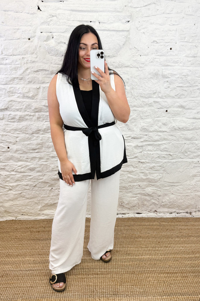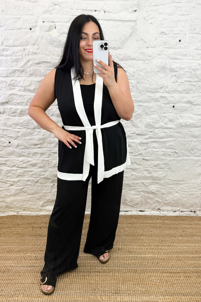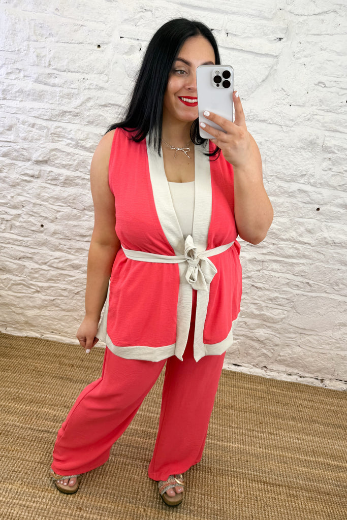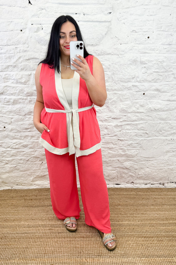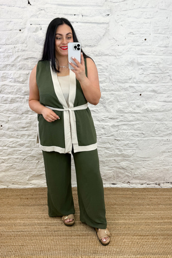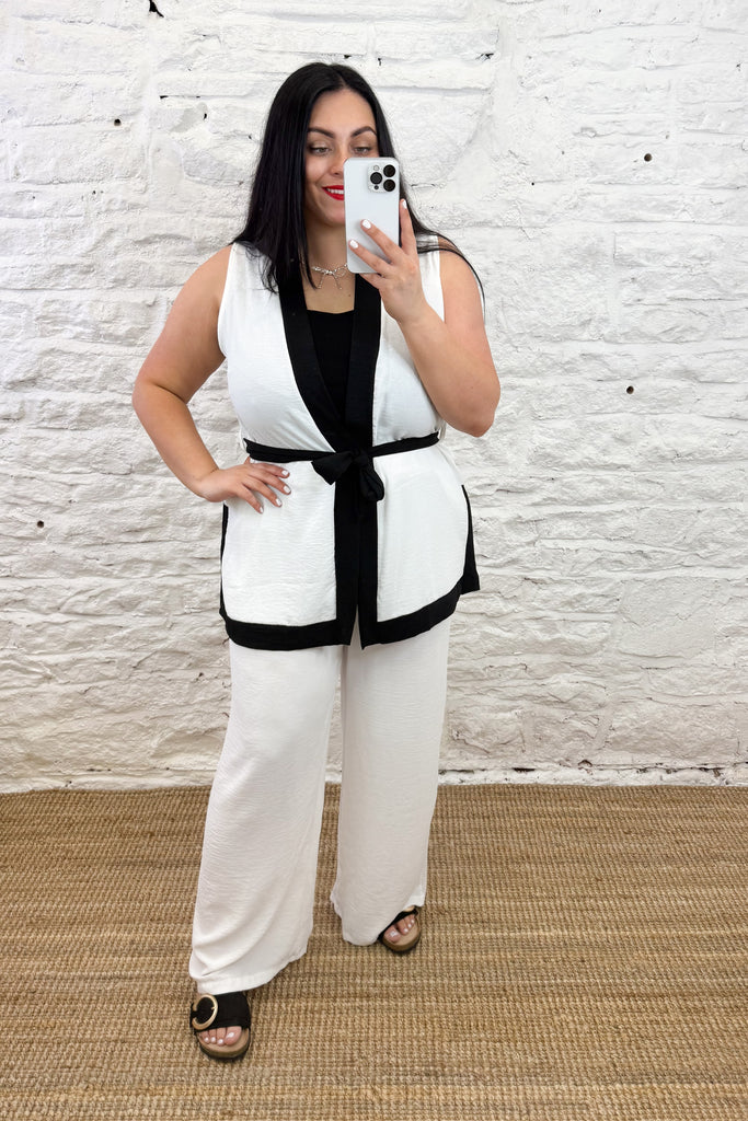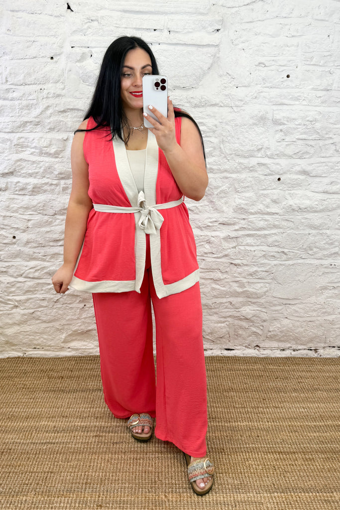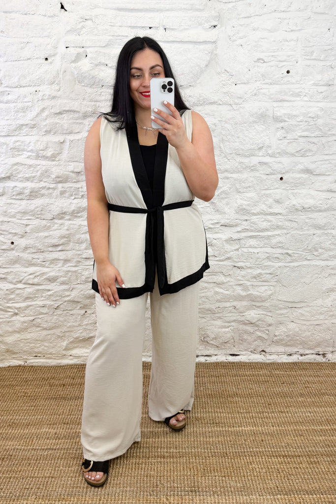 Step up your fashion game with the Grove Co-Ord. This stylish jacket features a contrasting panel and a tie belt, while the trousers complete the polished look. Perfect for any occasion, this co-ord pairs effortlessly with a vest top for a sophisticated and chic ensemble. Elevate your wardrobe with this must-have piece.