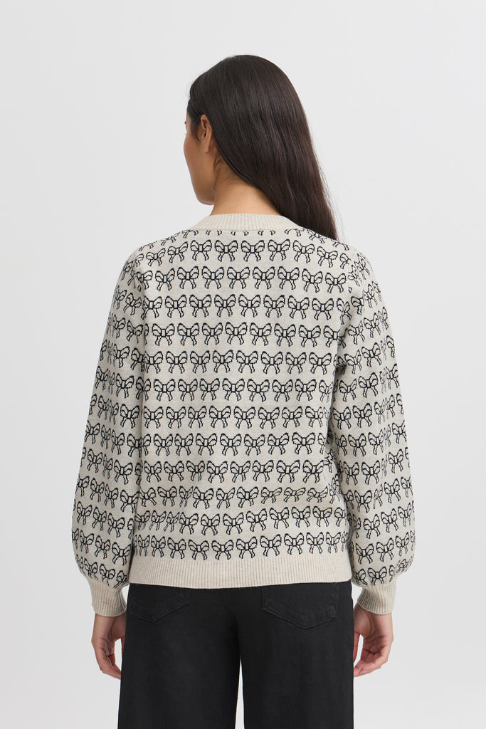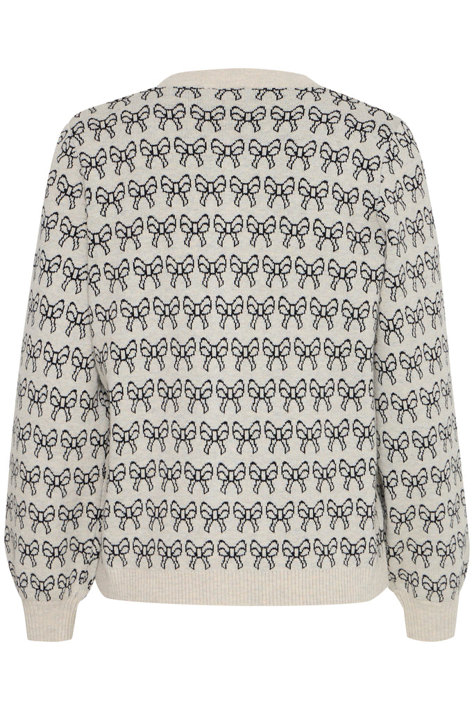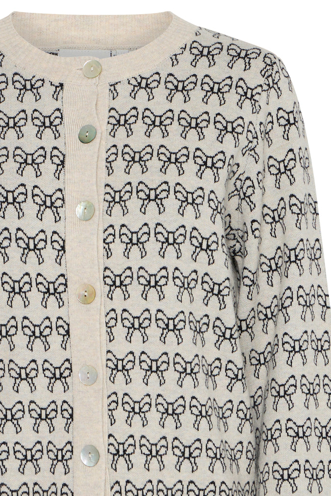 Introducing the versatile Brielle Cardigan in a classic cream and black colourway. Dress it up with the pearl buttons or wear it as a cosy jumper. On trend with a bow print, this piece is both cute and chic.