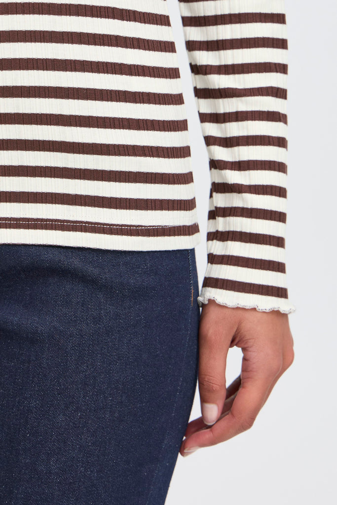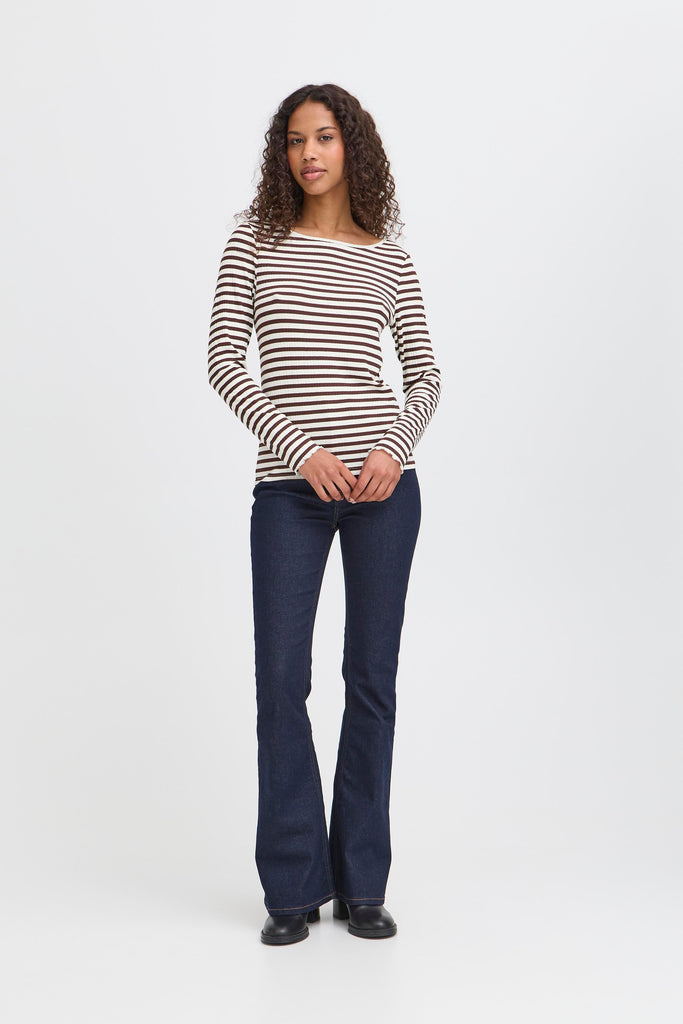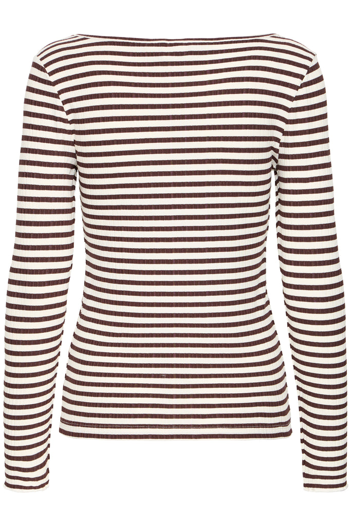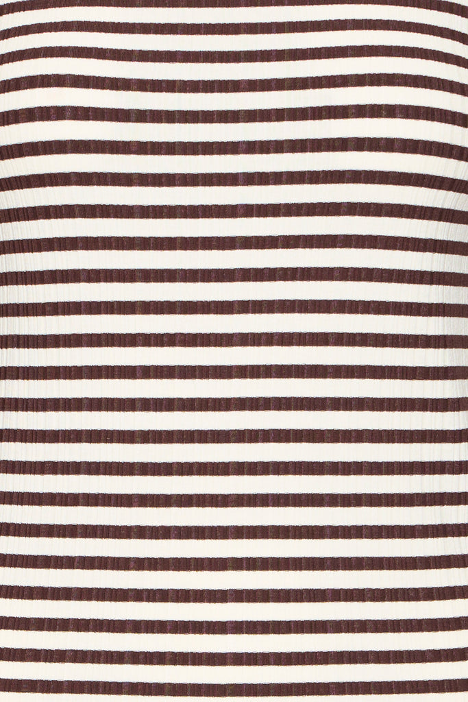 Elevate your wardrobe with The Cella Striped Top, featuring timeless coffee bean and white stripes and a flattering ribbed finish. Its long sleeves offer versatile layering options, making it a chic staple for any season. Perfect for pairing with tailored trousers or denim, this top effortlessly blends classic style with modern texture.