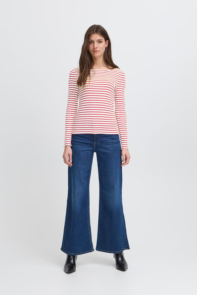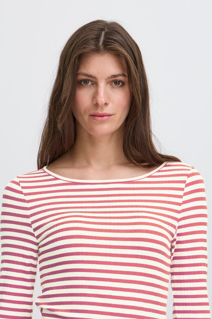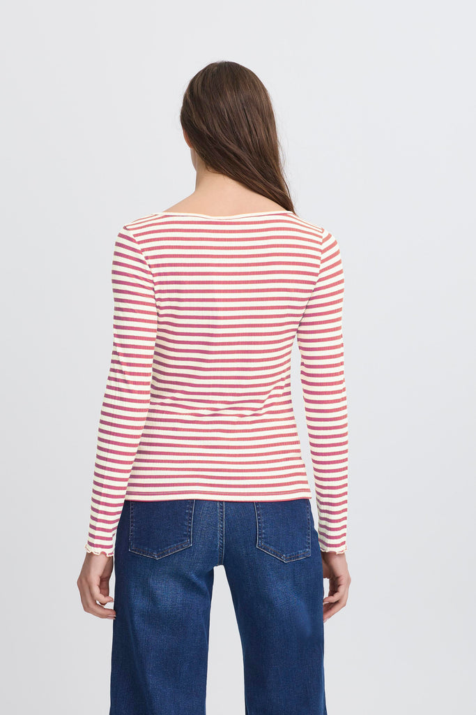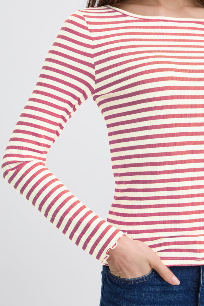 Elevate your wardrobe with The Cella Striped Top, featuring maroon and white stripes and a flattering ribbed finish. Its long sleeves offer versatile layering options, making it a chic staple for any season. Perfect for pairing with tailored trousers or denim, this top effortlessly blends classic style with modern texture.
