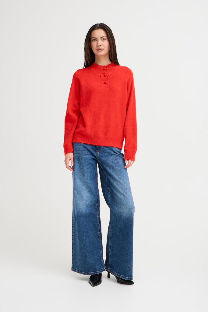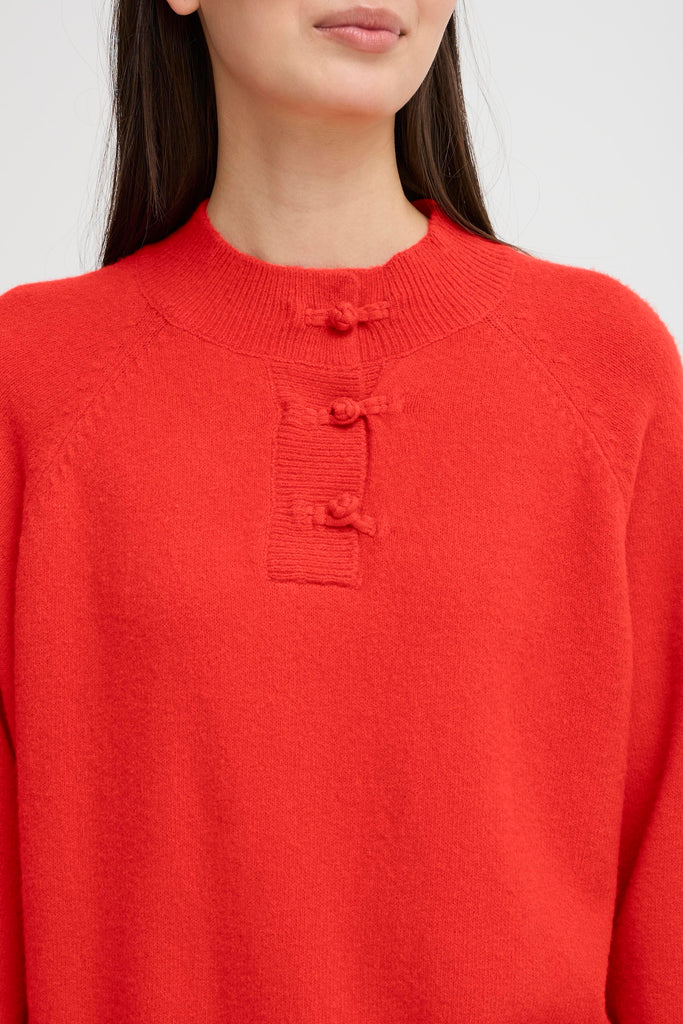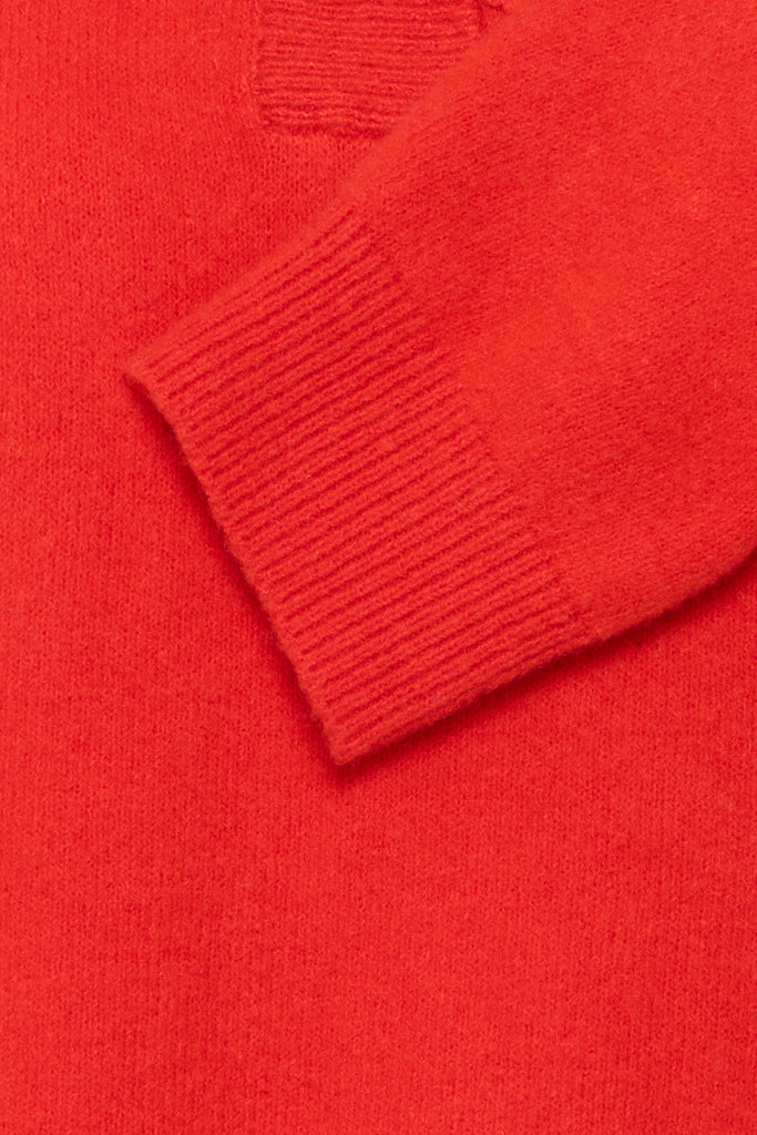 Elevate your wardrobe with the Dasila Jumper in a fiery red. This cosy knit features a distinctive knotted detail at the neckline, adding a subtle yet stylish twist to a classic silhouette. Perfect for layering or wearing solo, it combines comfort with a unique design element that effortlessly enhances your everyday look.