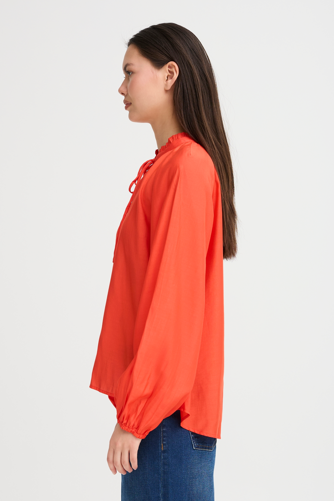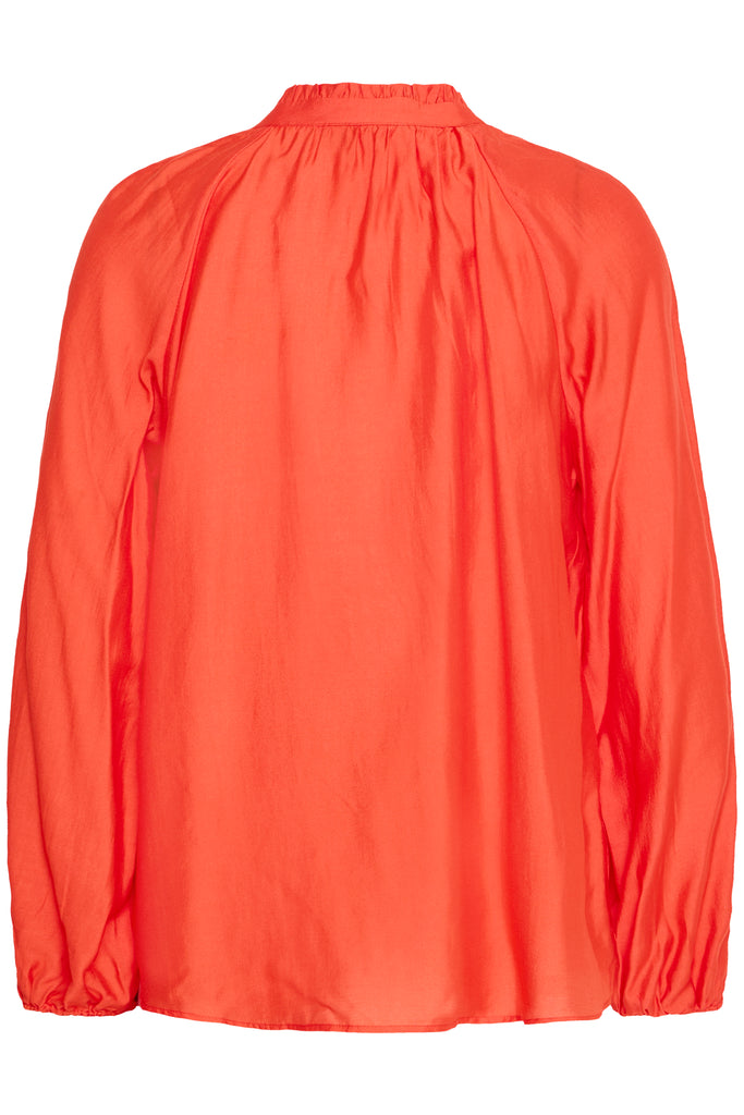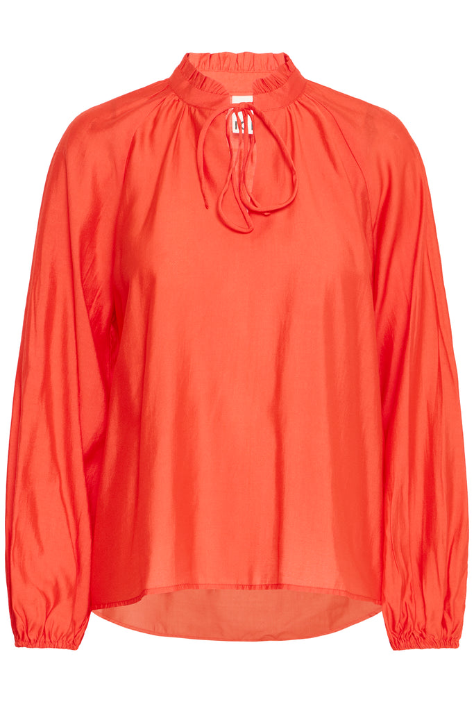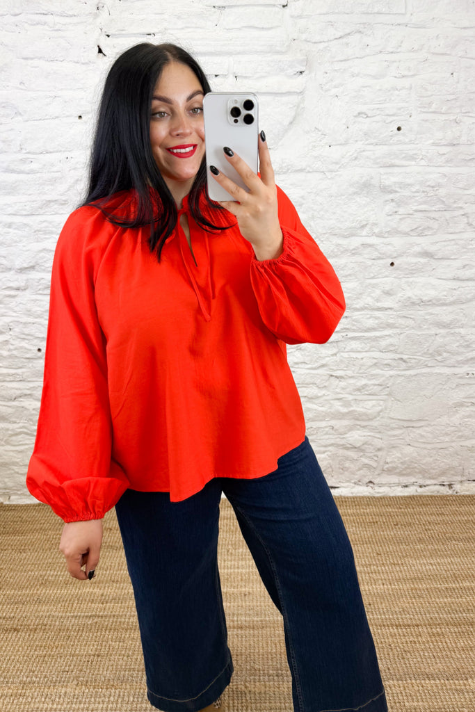 Elevate your wardrobe with the Karlani Blouse in Fiery Red. This floaty blouse features a delicate tie neckline that adds a touch of elegance and femininity. Its striking silhouette makes a bold statement, perfect for those who want to stand out with effortless style. Ideal for both day and evening wear, the Karlani Blouse combines graceful movement with a confident, fashion-forward edge.