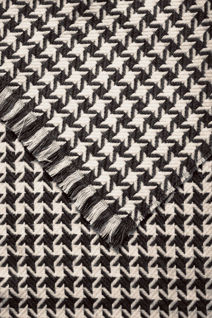 Wrap yourself in timeless elegance with The Vanja Scarf in black and cream. Featuring a classic dogtooth print, this cosy accessory adds a sophisticated touch to any outfit while keeping you warm. Perfect for layering, it effortlessly elevates your style with its chic pattern and soft texture.