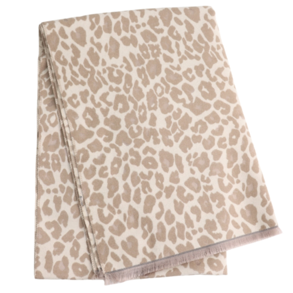 Wrap yourself in luxury with this thick leopard print scarf crafted from a cosy viscose blend. Its soft cream tones and bold pattern add a chic edge to any outfit, while the soft, warm fabric ensures comfort during cooler days. Perfect for elevating your look with a touch of wild sophistication.