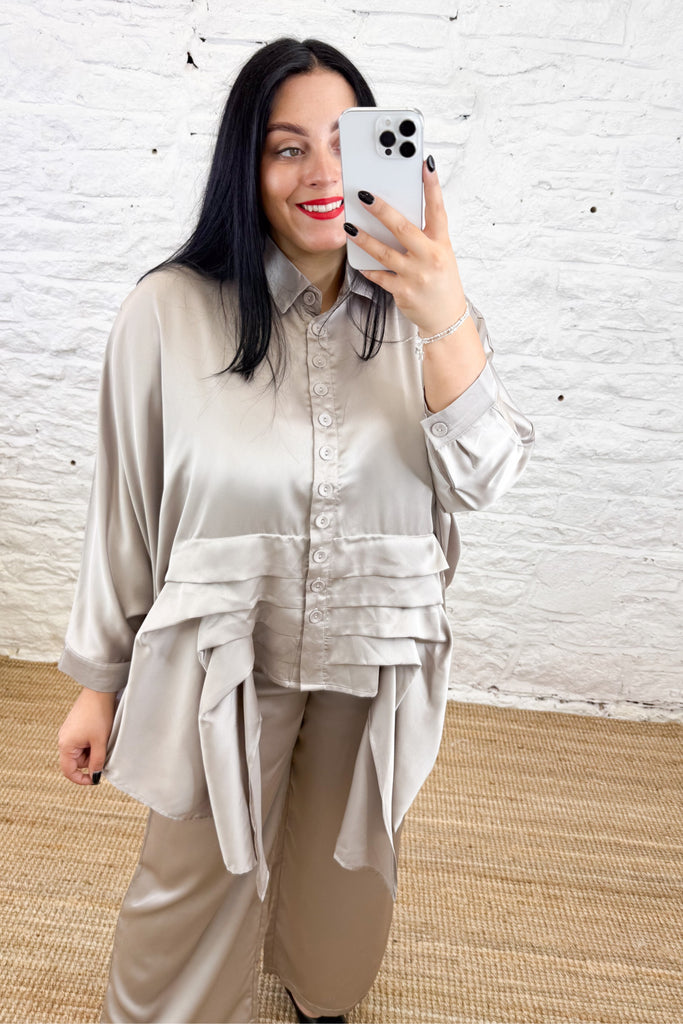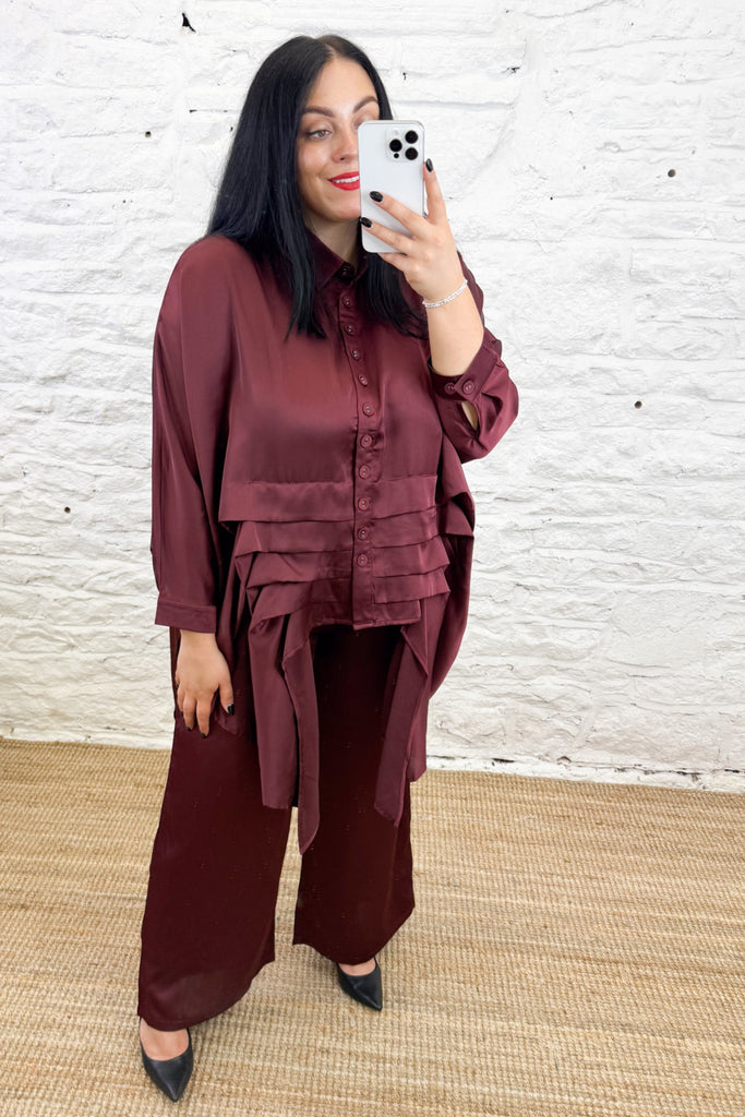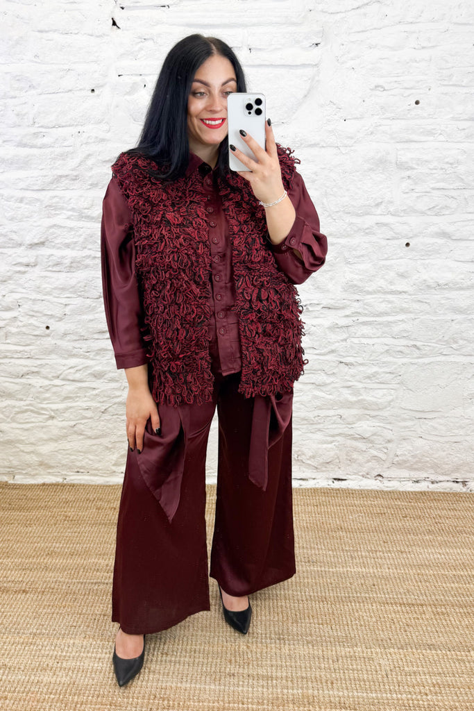 Elevate your wardrobe with The Mossy Textured Satin Wide Leg Trousers. Crafted from luxuriously smooth satin with a subtle sheen, these trousers feature a relaxed wide leg cut for effortless movement and a flattering silhouette. The adjustable drawstring waist ensures a perfect fit while adding a casual, chic touch. Perfect for styling up or down, they bring a blend of comfort and sophistication to any look.
