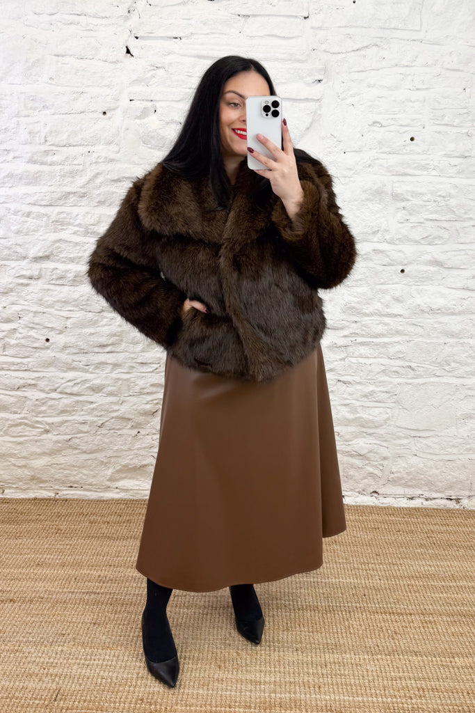 Elevate your winter wardrobe with The Naya Faux Fur Jacket, a sumptuous statement piece in a rich chocolate tone. This luxurious faux fur design delivers that coveted high-fashion aesthetic without compromise, while the soft lining ensures comfort against your skin. Perfect for layering over evening wear or pairing with casual basics, this jacket transforms any outfit into something utterly captivating. Whether you're heading to a special occasion or simply want to add a touch of glamour to your everyday look, The Naya is your go-to for effortless sophistication.