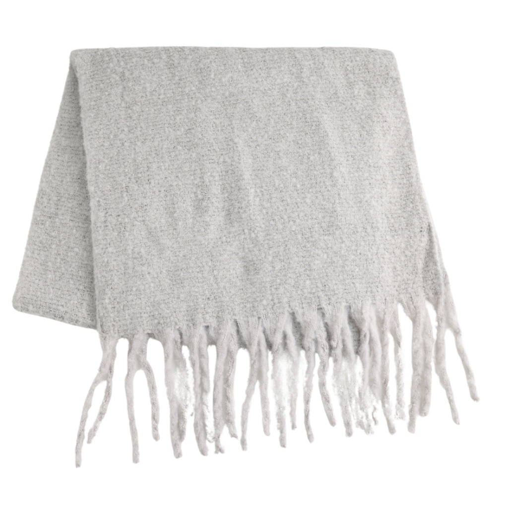 Wrap yourself in effortless style with The Plain Scarf in Silver. This chunky winter scarf features a sleek, plain design perfect for versatile layering and easy pairing with any outfit. The delicate tassel edges add a subtle touch of texture without overpowering your look. Cosy and chic, it’s a must-have accessory to elevate your cold-weather wardrobe.