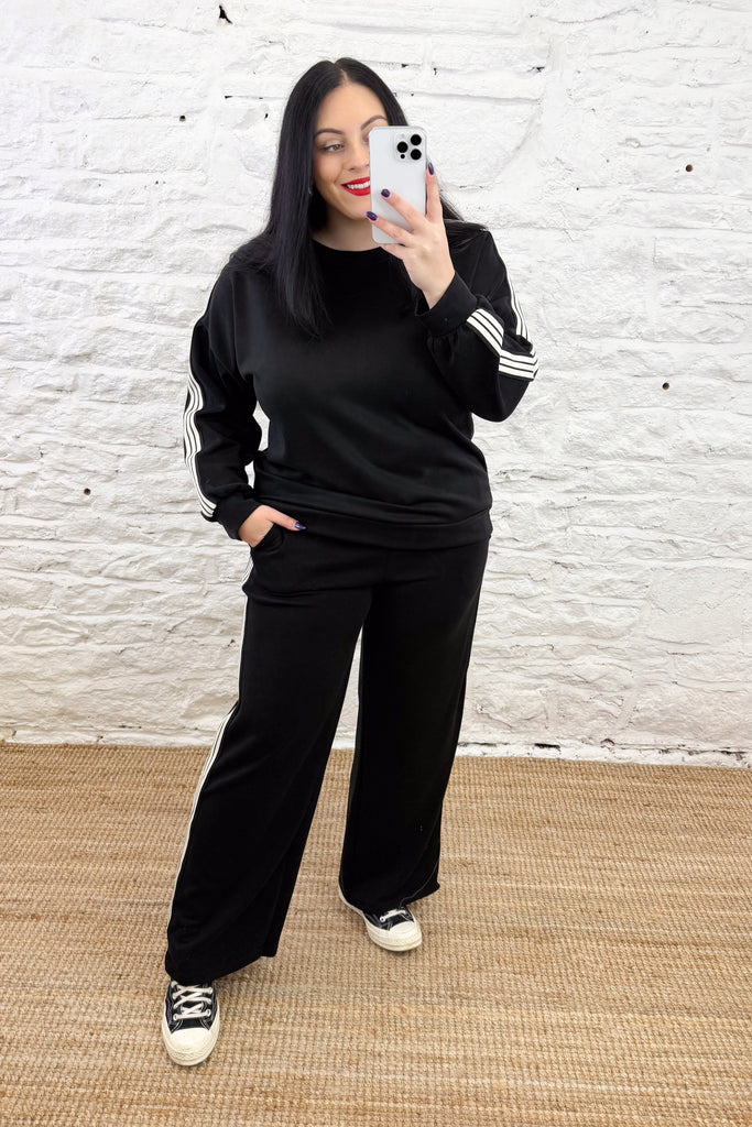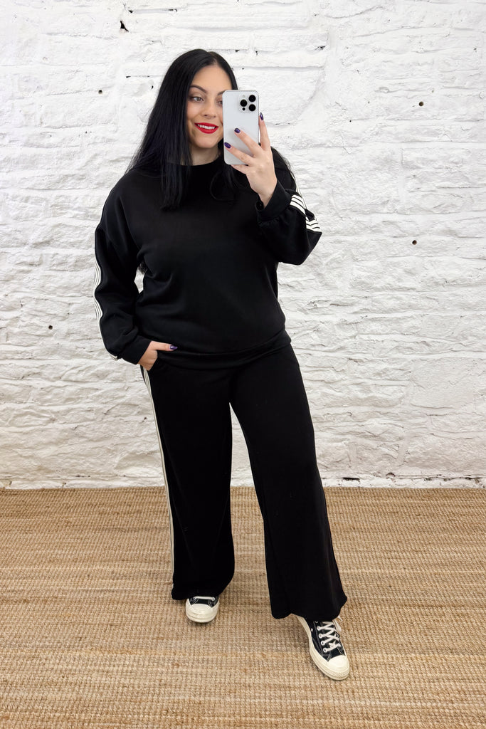 The Vienna Trousers offer a perfect blend of comfort and style with their soft, casual fabric and sleek side stripes. These trousers elevate everyday wear, adding a subtle sporty edge while maintaining a relaxed fit. Ideal for laid-back weekends or effortless city strolls, they pair seamlessly with both trainers and chic slip-ons for a versatile, modern look.