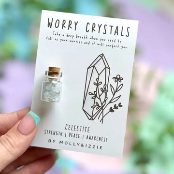 Free yourself from your worries with a special jar of celestite crystals! A gentle reminder to keep your mind at ease, these worry crystals are the perfect companion for your inner peace.
