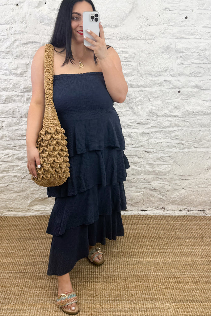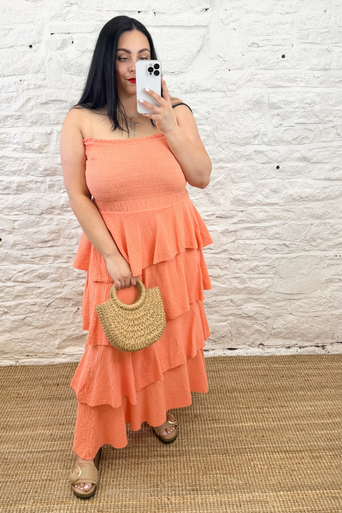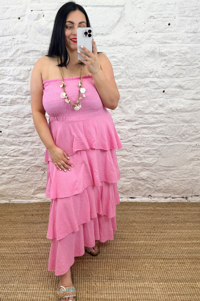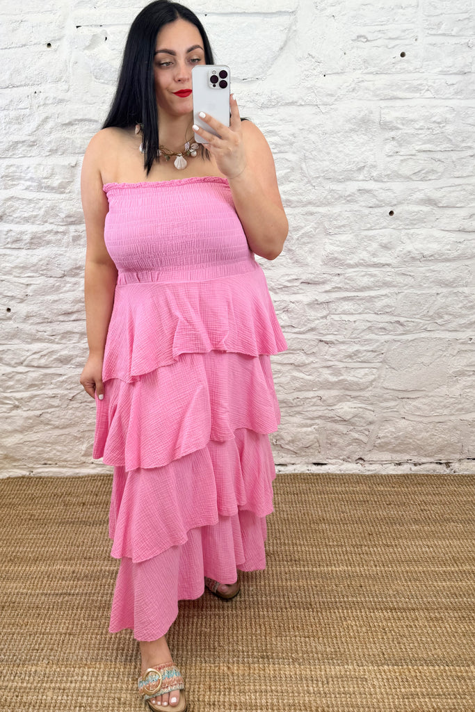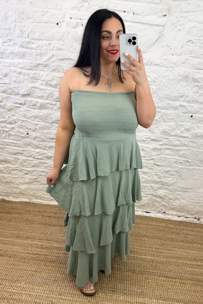 The Zaya Flutter Dress features shirred boob tube design with a layered flutter skirt. This dress offers a stylish and versatile look, perfect for any occasion. With its flattering silhouette and flowy, cheesecloth fabric, it is designed to enhance your figure and provide maximum comfort.